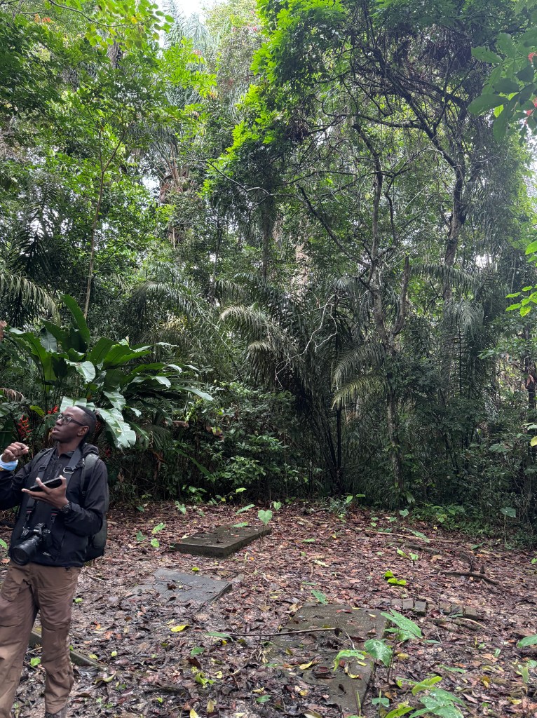 The dense, almost impenetrable jungle inwards from the river, is separated in parts by paths made centuries ago, but overgrown and competing against the undergrowth that wants to cover up the past, our history. Coloniser’s, lay buried under the encroached forest and those that remain are engraved in Old Dutch, some with their crests and others have slid into the mangrove swamps that flank the old Berbice River and continue to penetrate the heavy clay soil. Every edifice; every church, town hall, court house, merchant’s house, assembly hall, soldiers mess, officer’s smoking room, every single one was built by the enslaved peoples of the Dutch East India Company; those who were shipped across the Atlantic and others, the indigenous peoples of the Guianas. Only a few bricks remain and some fewer grave stones, everything else has been reclaimed into the land by nature. The slave masters, merchants, priests and vagabonds that came to these shores in search of wealth both on land and below ground; timber, gold, silver and precious gemstones, together with the harvests of sugar, cotton, coffee and indigo have now left. As we walked for two hours in single file through dense undergrowth, following paths cut through the forest and into clearings, the intense heat and humidity unsettled my mind and body. I no longer feel at ease in this climate yet I am drawn to the land, the rivers, to the people and to a place I call home.